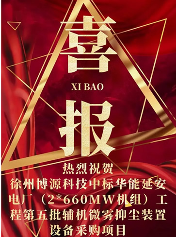 近日,矿用除尘设备-无动力除尘设备厂家在传中标喜报!热烈祝贺徐州博源科技中标华能延安微雾抑尘装置设备采购项目!