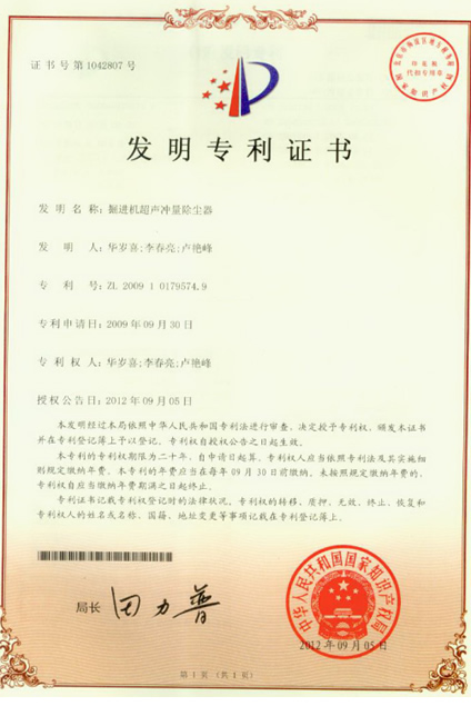2012年,公司研制成功了首台掘进机超声冲量除尘器,与西安煤矿机械厂新研制的EBZ230型悬臂式掘进机成功配套,在陕西永陇能源开发建设有限责任公司崔木煤矿进行了为期半年工业试验,11月13日,在陕西省科技厅的组织下,在西安通过科技成果鉴定。